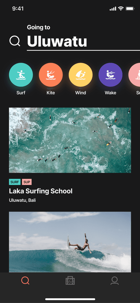 Learn snowboarding, skiing or surfing. Share where you're going and the app will help you find the best local schools and coaches to do it!