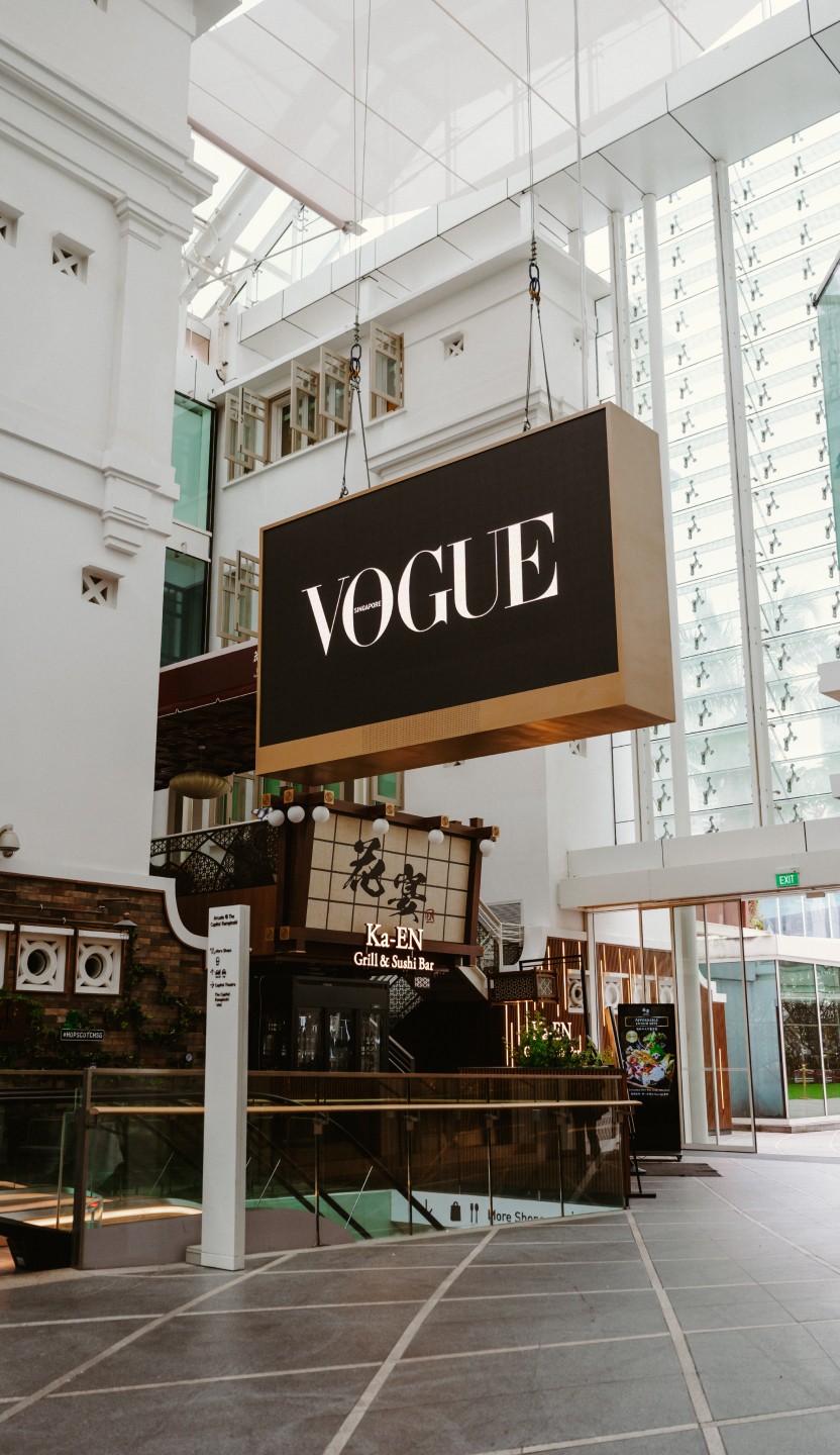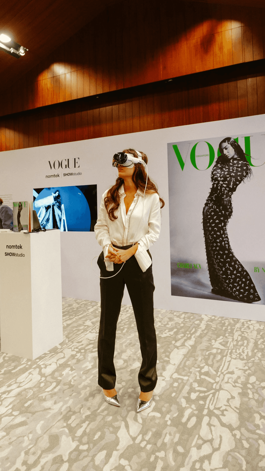 Spatial showroom featuring eight iconic Vogue covers and an immersive backstage video from a photoshoot with Charli XCX.
