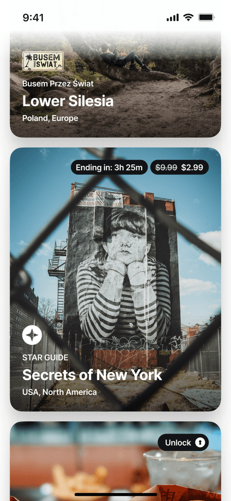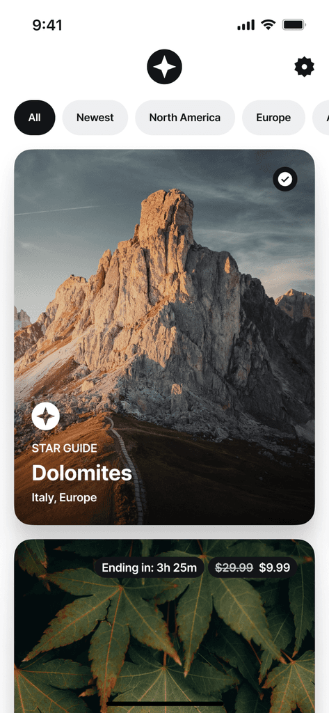 At start, the app provided a limited selection of guides.To not draw too much attention to it, I displayed them as a simple list, with each guide appearing as a large card featuring an attractive cover image.